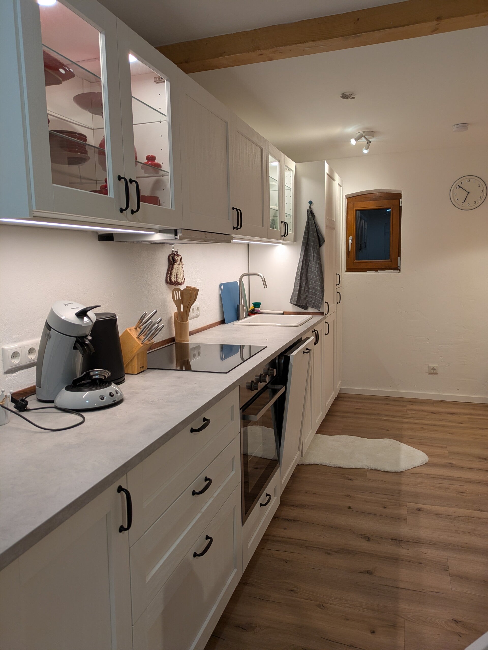 Unsere Ferienwohnung bietet Ihnen allen Komfort mit Klimaanlage, Spülmaschine, Standardgeräten wie Toaster, Airfryer, Kaffeemaschine und TV sowie WLAN. Eine Mikrowelle ist aus Platzgründen nicht vorhanden.